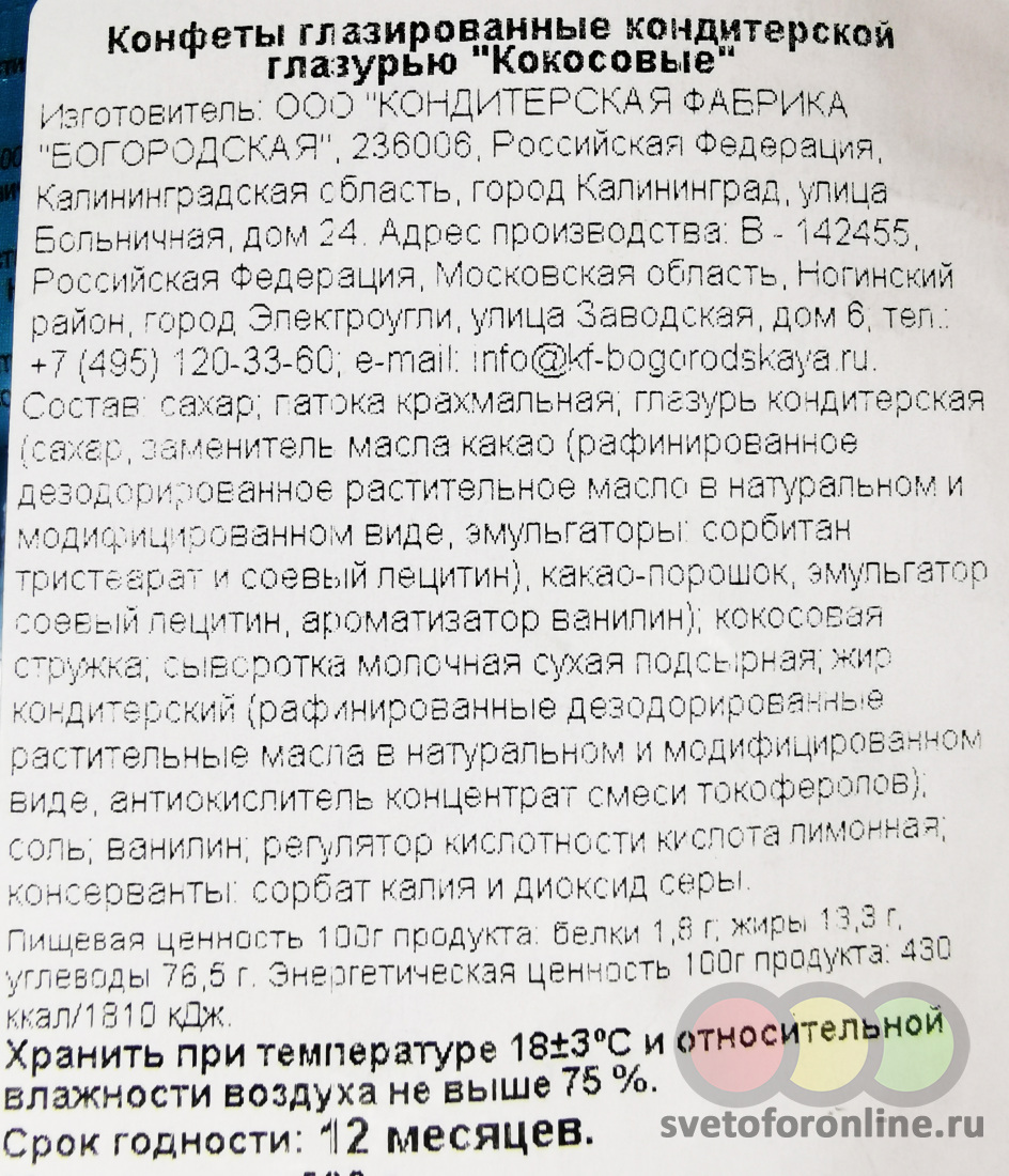 Конфеты глазированные Кокосовые 0,5кг Кондитерская фабрика Богородская