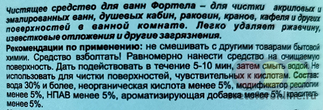 Средство для чистки ванн Fortela (акрил, эмаль), 0.75 л, Хим Групп